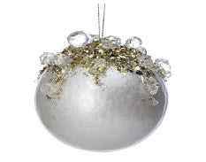 ESFERA PLATEADA CON PIEDRAS Y BRILLO DORADO 11.5 CM