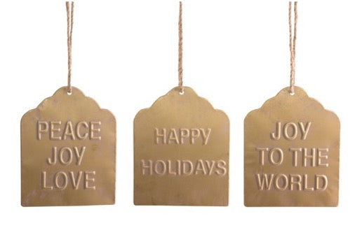 SET DE 3 ESFERA DE TAG CON LETRERO DE METAL 25 CM